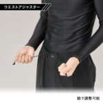 裾のマジックテープを絞ることによって引きずりを防止します。
